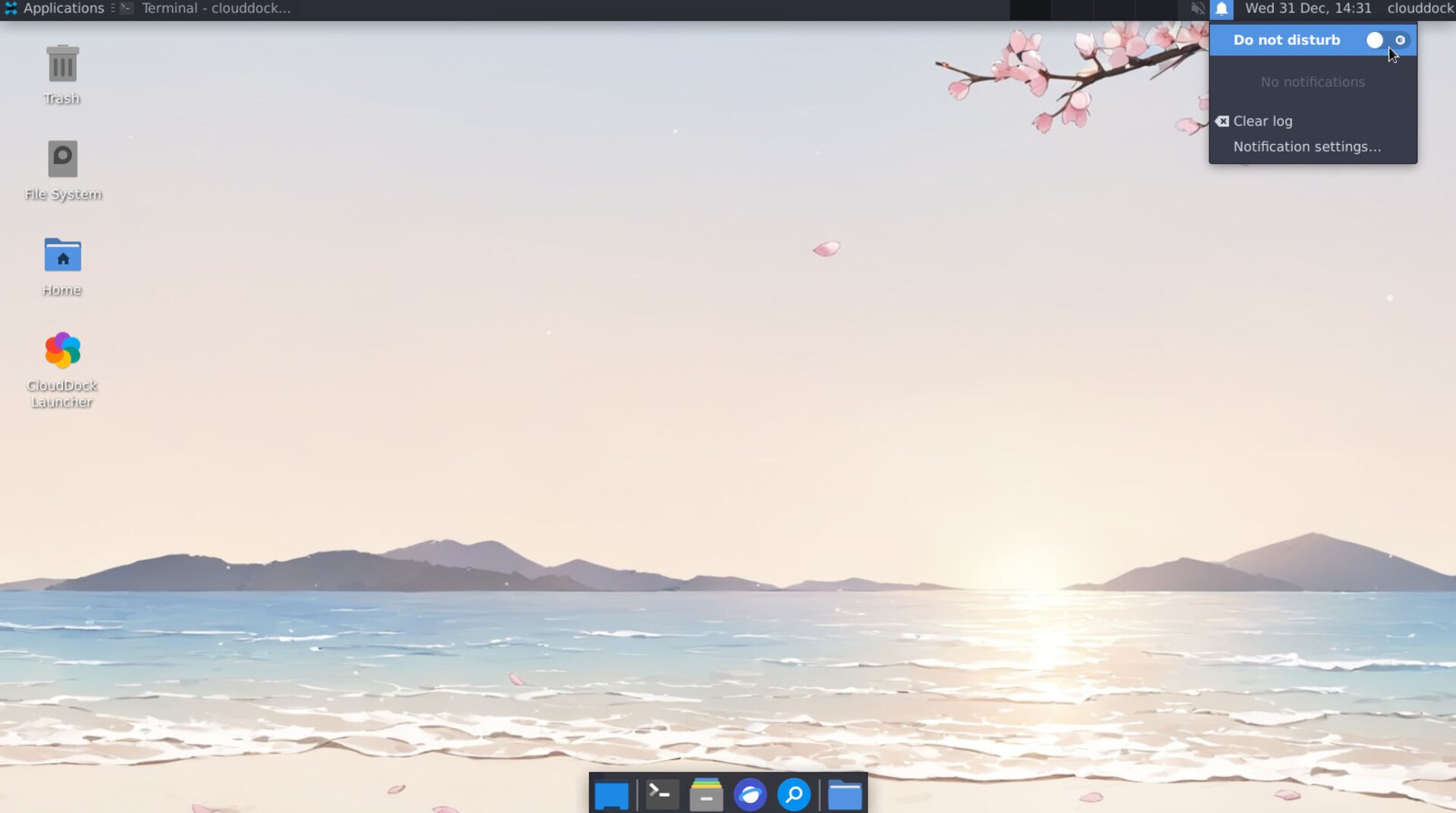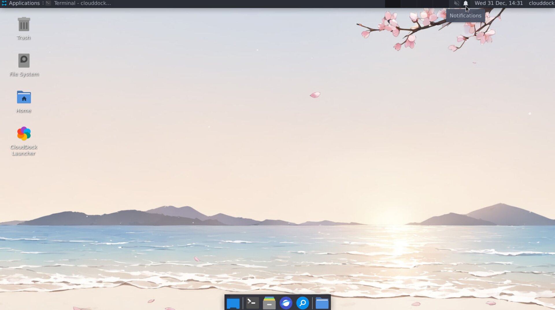 Panel bar with bell icon