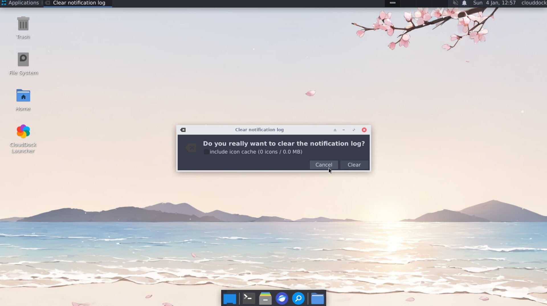 A small dialog asks “Do you really want to clear the notification log?”. Choose Clear to proceed or Cancel to keep them.