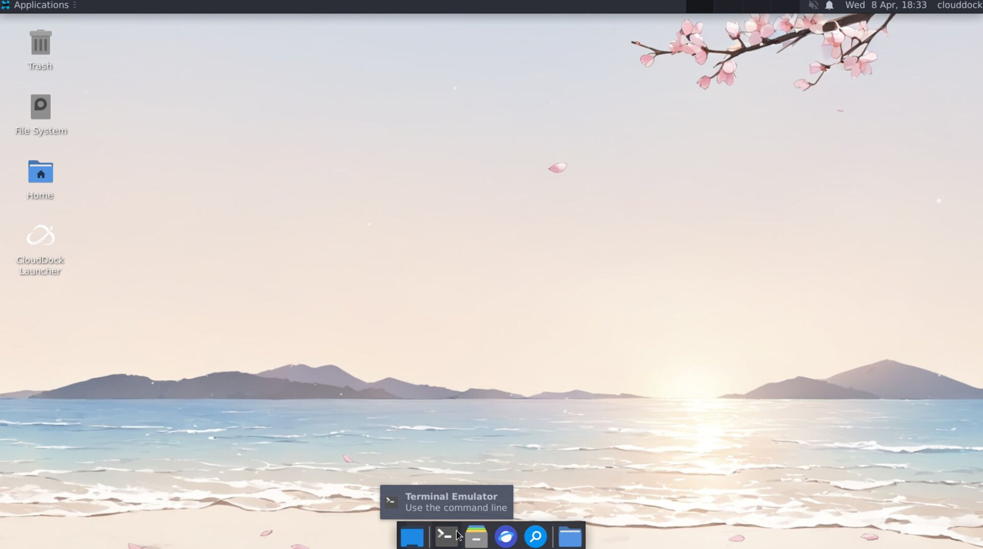 Double-click the Terminal icon in the bottom dock to open the system terminal.