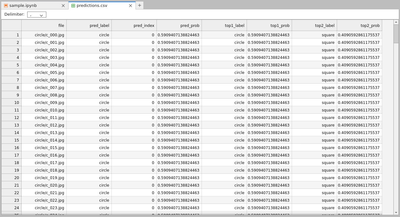 CSV preview of batch predictions (replace with your screenshot).