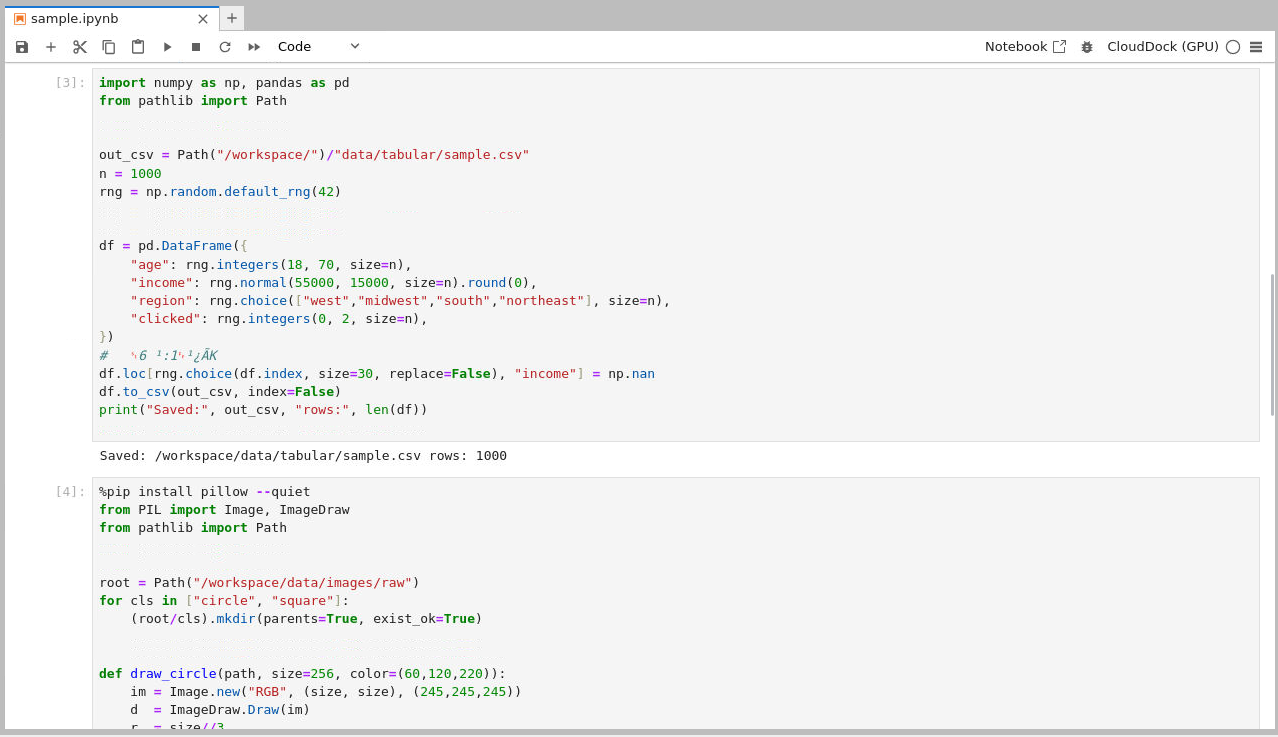 /workspace/data (inputs), /workspace/notebooks (ipynb),